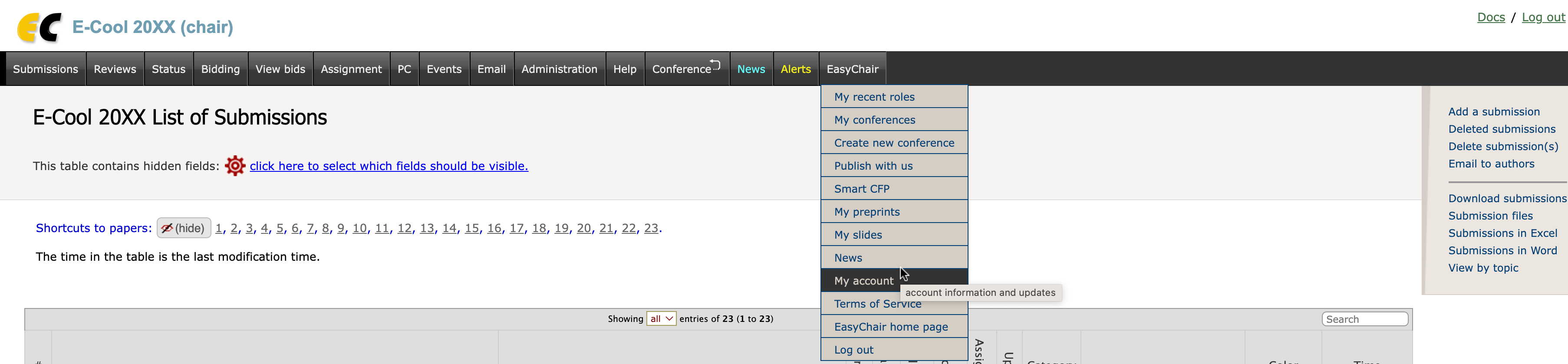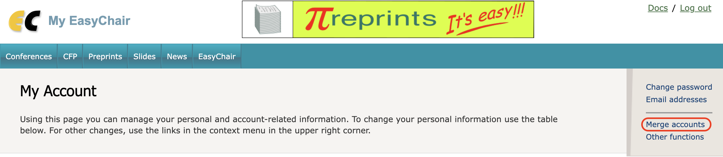 If you have more than one account in EasyChair, you can merge them into a single account.