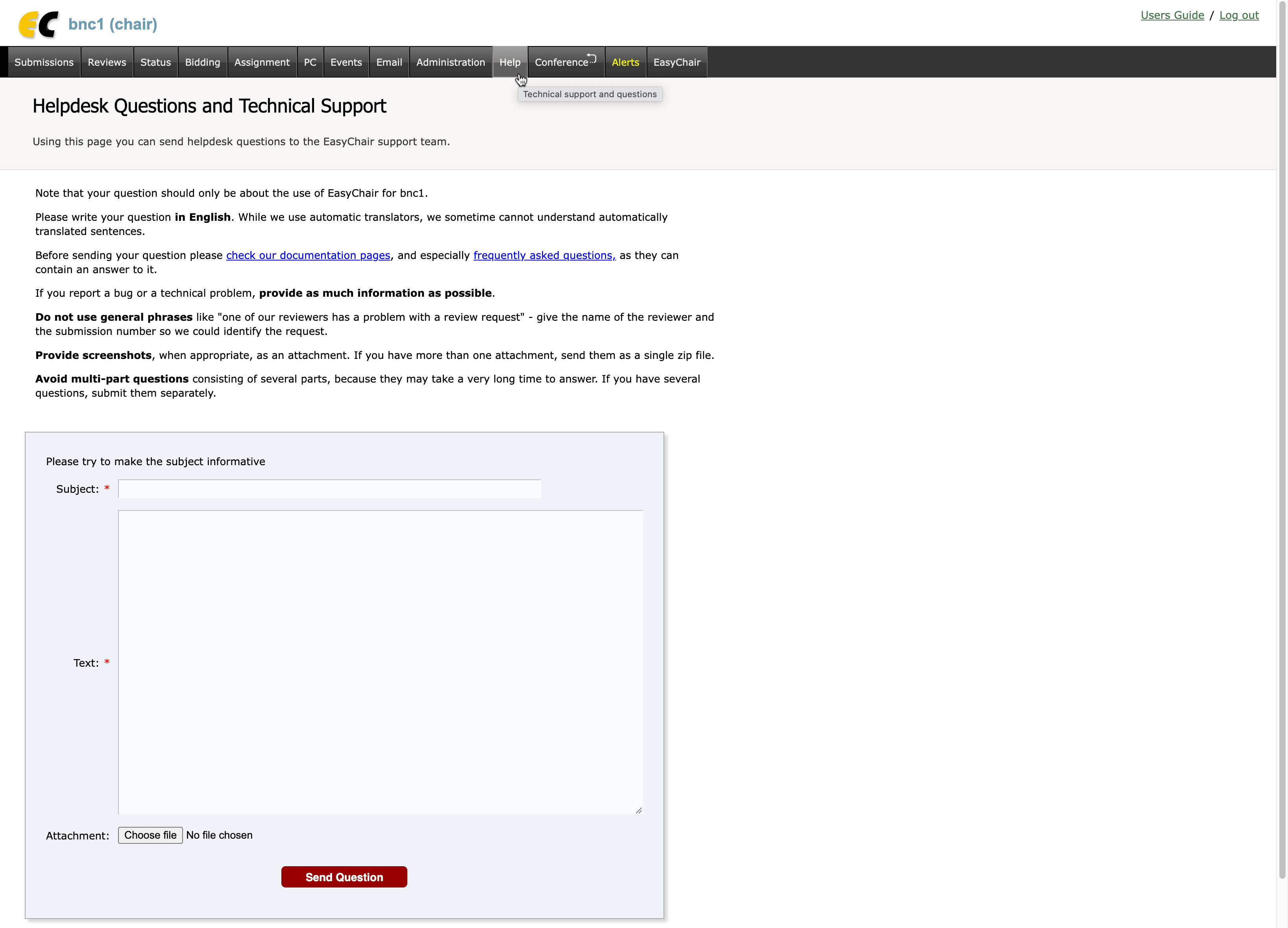 Using this page you can send helpdesk questions to the EasyChair support team.